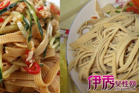 豆腐皮的做法还有许多,不仅可以做下饭的小菜,还可以做上得了台面的大餐呢,下面由小编告诉大家如何将不起眼的豆腐皮制作成上得了台面的大餐吧,其实一点都不难,而且煮的时间也会非常快,我们需要采取的做法就是将豆腐皮做成卤水,将豆腐皮像煮鸡爪、红烧肉那样卤煮,直接加八角粉等各种卤水煮半个小时就可以,直接将豆腐皮煮成深颜色,然后捞起来和瘦肉一起炒,豆腐皮本身就比较有味道,因此在豆腐皮炒肉片的时候只用加少许的盐就可以了。【女物原创未经允许,谢绝转载!】