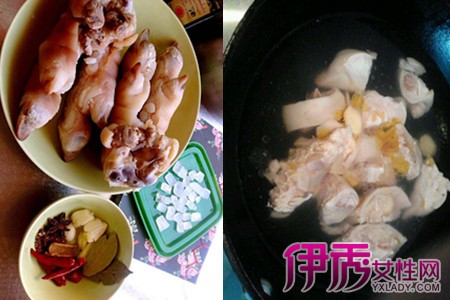 1、猪蹄加葱姜焯水后捞出备用;