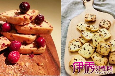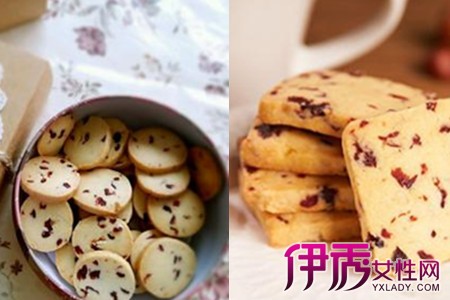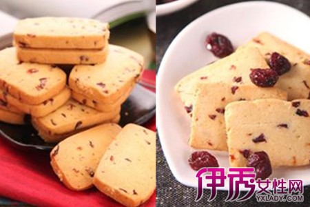 之后我们准备鸡蛋,用量同样根据面粉的用量来选择。糖粉也是不可或缺的,缺少了甜味,点心都失去了意义。蔓越莓干的话就更没有什么特殊要求了,直接购买就可以。首先我们将黄油于室温下融化,不需要融化成汁水状,用手捏感觉到变软就行,之后加入糖粉用打蛋器打匀,再加入鸡蛋。注意这里的鸡蛋是打好的蛋液。蔓越莓切成小丁状加入打发的黄油和蛋液之中,再筛入面粉拌匀就可以了。这时候取保鲜膜,将搅好的面团裹成长条状,放入冰箱冻硬后拿出切成薄片,摆盘放入烤箱,十分钟后取出,我们就能看到香喷喷的蔓越莓饼干啦。【女物原创未经允许,谢绝转载!】