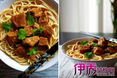 第一步是牛肉的处理,首先把肥瘦相间的牛肉用洗净,然后将牛肉放在清水里浸泡,最好每一小时换一次水,浸泡之后再将牛肉切成大块状,最后将牛肉放在凉水中煮开清洗备用。第二步是调料的处理,在锅中将冷油加热之后放入辣椒丝,大蒜,生姜香叶,陈皮,八角,小茴香,桂皮和洋葱,烧热之后,就可以将一小块冰糖放入其中直到融化,紧接着就将准备好的番茄酱和豆瓣酱放入油中,这个时候可以将香葱也放入其中。第三步就是红烧牛肉的制作了,将煮开洗净的牛肉块放入锅中,待其上色后,可以加入适量酱油翻炒。到这里并没有结束,我们还需要将,锅中的牛肉及所有调料放入高压锅,添加的水量要刚好淹没牛肉即可,先用大开大火煮开,然后再用中火煮半个小时。最后一步就是将面条在白水里煮开,放入刚刚熬制好的红烧牛肉汤料里,这个时候再将准备好的青菜和西红柿放入碗中,那就真的是一碗色香味俱全的红烧牛肉面了!【女物原创未经允许,谢绝转载!】