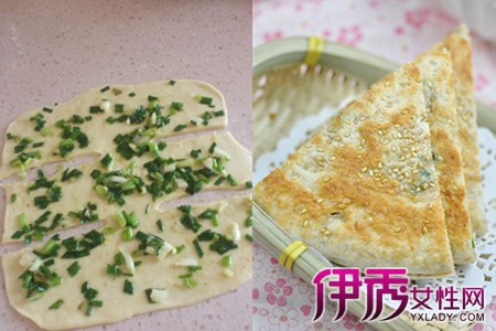 第二张做法是,准备五百克面粉,色拉油和葱。面粉加入水后揉成面团,等面团发二十到三十分钟,把面团分成两份。面团会自己发酵。葱切成葱花后加入其中一块面团上,上面再撒上一点点盐和花椒粉和色拉油。卷成长条。把面团擀薄,但千万要擀得均匀一点。平底锅加入油烧热,把擀薄的葱油饼加入煎至金黄,吃的时候再切成小块就完成了。小孩子喜欢吃鸡蛋还可以在葱油饼上加入鸡蛋液,这样的葱油饼营养又健康,而且会很受小朋友喜欢。【女物原创未经允许,谢绝转载!】