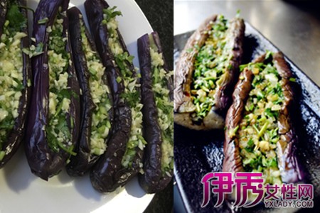 第一步,将茄子洗干净再晾干,根据茄子的大小切成三片左右,注意不要切断,将蒜捣碎至粘稠的泥状;第二步,将切好的茄子放进锅里蒸15到20分钟,取出熟的茄子自然风干;第三步,将蒜泥加入盐,并根据自己的口味适当添加醋、辣椒、香菜等,一并搅拌;第四步也是最关键一步在两片茄子之间先抹上一层薄薄的蒜泥,然后再洒上一层盐,相近的两片各自组合。