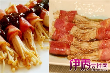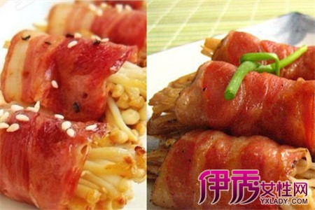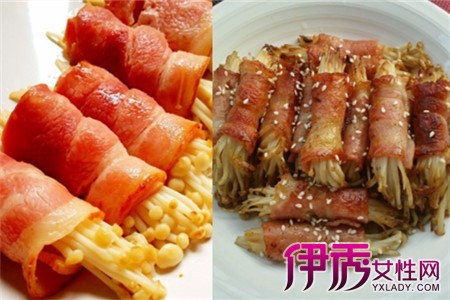 这道菜是很多人都喜欢的,尤其是小孩子。培根是高热量的食物,和金针菇搭配能够实现很好的营养均衡。首先你要准备培根10片、金针菇、生菜芝麻酱、食用油、胡椒粉。将金针菇洗泡在水中,加人盐,过十分钟后整块的取出,切除不要的部分,保留整块。同时将生菜洗干净备用。之后就是将金针菇和培根卷在一起。最好不要弄散开。不然不容易下锅。
