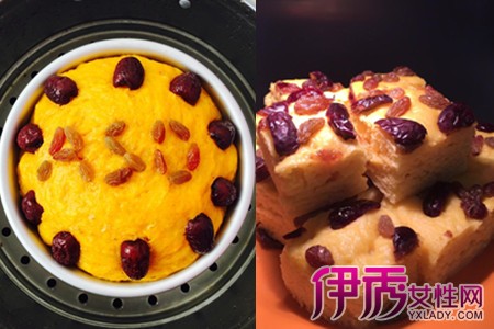 材料:玉米粉、面粉、纯牛奶、细砂糖、酵母、葡萄干