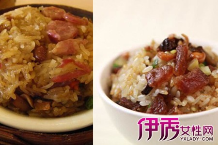 腊味糯米饭准备材料:糯米、腊肠、腊肉、香菇、干贝、虾米、鸡蛋、香葱、绍兴酒、生抽、香油做法:糯米洗干净,用冷水泡5个钟。冬菇用清水泡开后去蒂,切成丁,泡冬菇的水要留着。腊肠和腊肉用清水洗干净后切成丁。虾米洗干净、瑶柱洗干净撕成丝。.在蒸锅铺一块布,把糯米挤干水,加入虾米和瑶柱丝,一起进锅用蒸30分钟,每隔10分钟往糯米撒一次泡发冬菇的水,每次撒完用筷子搅一下,继续蒸。加入洗净的腊肠丁和腊肉丁,继续蒸15分钟,关火,糯米要用盖子盖好防风干。把鸡蛋打散并加食盐,用锅煎成薄蛋皮,再切成蛋皮丝。锅内倒入腊味丁,炒出香气后加绍兴酒,加入冬菇丁继续炒,然后加入糯米饭炒到松散,加生抽、白砂糖、食盐和香葱花,炒到糯米饭表面有点焦黄就关火,加上蛋皮丝就完成了。【女物原创未经允许,谢绝转载!】