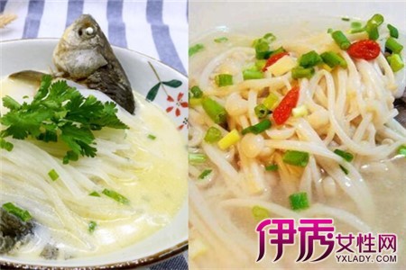 接下来就是准备下锅了,将锅中加入适量的食用油,待油温烧开之后,加入生姜再将之前准备好的鱼下锅。一旦鱼变色之后就将其翻转够来油煎,同时加入少许的盐。两分钟之后就可以加入凉水了,凉水最好要达到锅的三分之一。等水的颜色开始变成白色后加入豆腐、白萝卜继续烧,这时候你也可以加入少量的调味剂,因为鲫鱼本身味道就鲜美,所以可以不用加味精。这时候烧的时间最好长一点,等汤的颜色变成奶白色就可加入番茄了。两分钟后美味的鲫鱼汤就完成了。【女物原创未经允许,谢绝转载!】