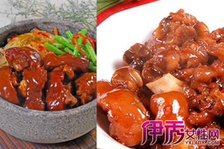 猪脚饭也是粤菜中很受欢迎的菜品。猪脚含有较多的蛋白质,具有很好的美容效果。做法是先将猪蹄洗干净切成小块,然后放入水中煮,倒入生抽、老抽会更容易上色。再将花椒、八角、树皮、香叶等大料放入,然后小火慢炖。记得要时不时的用锅铲翻搅一下,以防粘锅。然后大约半个小时左右猪脚煮熟了,收汁成浓浓的汤汁。再把猪脚放在米饭上,米饭拌汤汁味道浓浓的。