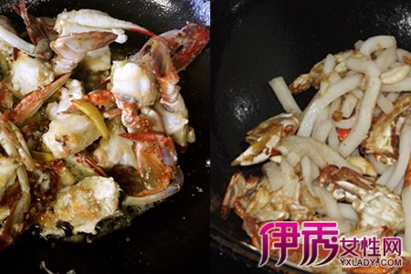 将已炸好的蟹放进锅里,中火快速煸炒,以免粘锅。五、煸炒约5分钟后加入一碗水,并加入适量白糖,等水再次烧开后,再加入处理过的年糕,继续保持中火不间断快速翻炒,炒至水基本收干后即可大功告成了。梭子蟹炒年糕最好是趁热吃,毕竟蟹肉放久了会有腥味,影响口感。中国人过年最讲究的就是年味,年糕的味道就是最具有代表性的年味。一碟小小的梭子蟹炒年糕那充满年味的香气四溢,是否会勾起你过年家人团聚的美好情景?快快来亲手制作一碟充满年味的梭子蟹炒年糕吧!【女物原创未经允许,谢绝转载!】
