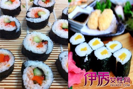 寿司有很多种,但是准备的材料都是差不多的。有的人喜欢吃有肉的寿司,那么在准备材料的时候就可以准备一些新鲜的肉,不过做法会有一点点不同,例如三文鱼的寿司,就不需要用到竹卷,直接将弄好的寿司饭捏成条状,将三文鱼肉放在寿司饭上就可以了。不管是要做什么样的寿司,寿司饭都是必备的,所以一定要准备好糯米和食用米。根据个人的口味不同,我们也可以准备一些不同的蘸料,现在很多人都比较喜欢吃加了沙拉酱的寿司,所以在准备寿司材料的时候也可以准备一些沙拉酱和番茄酱。【女物原创未经允许,谢绝转载!】