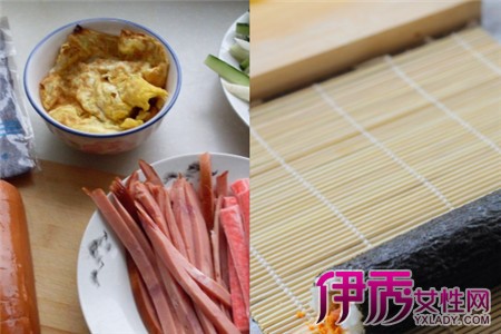 我们需要准备的有食用米和糯米,白醋和白糖,盐、海苔、胡萝卜、黄瓜、竹卷。首先要做的就是寿司醋,用白糖和白醋还有盐混合煮,直到白糖煮化,然后在用食用米和糯米以十比一的比例煮寿司饭。将胡萝卜、黄瓜洗干净去掉皮,并将它们切成丝状待用。最后等所有的东西都煮好了之后,把寿司醋混合在寿司饭中搅拌,将海苔铺在竹卷上,将煮好的寿司饭均匀的铺在海苔上,在将胡萝卜和黄瓜整齐的铺在中间,然后就可以卷了,卷的时候要用力,这样寿司才不会容易散。