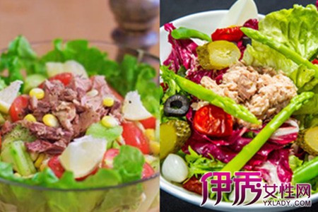 沙拉大家都有吃过,经常在家里面吃的比较多的就是蔬菜沙拉、水果沙拉之类的。金枪鱼沙拉想必吃的比较少,今天教给大家金枪鱼沙拉的做法,大家可以试着在家里面做一下,十分的好吃哦。准备好熟的玉米粒,将新鲜洋葱切成细丁,奶酪片切碎,将日本酱油,料酒,黑胡椒粉,辣椒油调制成酱汁,稍微放一点盐提鲜。将金枪鱼从金枪鱼罐头里面拿出来,撕成长条,倒入酱汁和洋葱、奶酪碎搅拌均匀,后加入生菜,增加纤维素的含量,促进肠道蠕动,避免便秘。最后挤上沙拉酱就可以了。【女物原创未经允许,谢绝转载!】