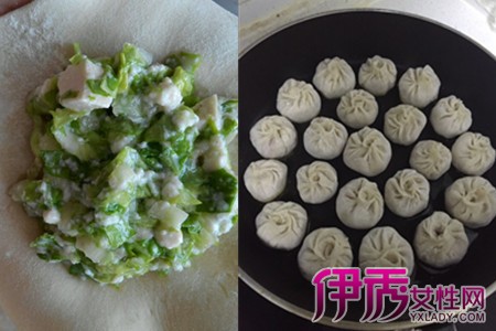 第四步,包子皮逐一放满馅料,就可以准备下锅煎了。以上的步骤和普通的包子做法是一致的。来到关键的第五步,先在平底锅上均匀地洒上一层油,中火加热后再将包子放进去煎,把底层的包子皮煎至金黄色后,再加水,水以不超过包子的三分之一高度为宜,合上盖子后继续以中小火慢煎。以水煎干了,并发出吱吱声为蒸熟的标志,一锅地道的水煎包子就完成了。要做好水煎包,最重要的一点就是把握好火候,全程以中小火为主,炸至金黄色后加水蒸至水干即可。大家都动手试一下吧。【女物原创未经允许,谢绝转载!】