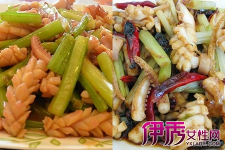 说到这个鱿鱼,尤其是干鱿鱼,客家人就会用来炒着吃了。干鱿鱼用清水浸泡一个晚上,第二天用清水把它洗干净,然后用横刀竖刀来划花,最后切成一片一片的,市场买回来芹菜,用叶去掉,只留下芹菜根,然后切成一段一段的,姜切成丝,取出锅,锅热油开后,先把姜丝放进去大火爆炒并出味,然后把切好的鱿鱼也放进去,一样是大火爆炒,5分钟左右,把芹菜加进去并一起炒,3分钟后加放适量的清水,待水煮得差不多干的话撒入少许的盐巴和料酒调味,最后加入水淀粉就可以装盘了。【女物原创未经允许,谢绝转载!】