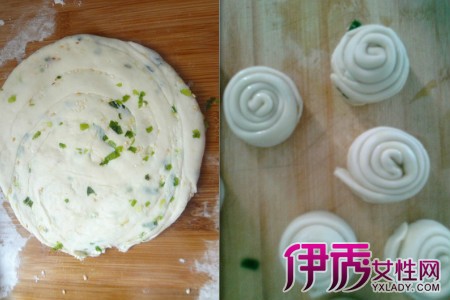 准备好这些之后我们就可以开始进行下一个步骤了。步骤四,把加好了材料的面皮从上面向下面卷,卷成长条状,再像卷,花卷一样的卷面团,使其更加均匀,完成之后就分成两份或者四份面团(薄厚看个人爱好吧,喜欢薄可以多分成几份)再将切好的面团擀平擀开,平铺在桌面上。步骤五,下锅,差不多饼中间鼓起来 再翻个面 另外一面也鼓起来,颜色金黄色状就可以出锅了。一道新的美味就呈现在你眼前啦,择日不如撞日,今晚快来试试吧!!!【女物原创未经允许,谢绝转载!】