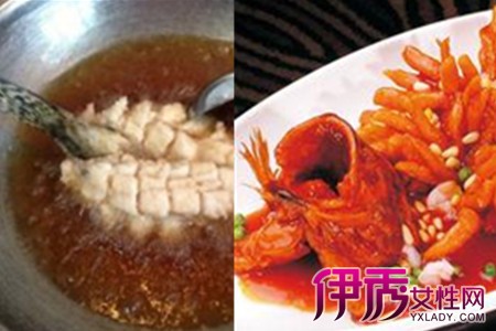 首先准备一下用材,桂鱼一条,1.5斤左右即可,松子30克,糖100克,白醋150克,番茄酱150克,盐,油,料酒适量。下面将食材做下处理,把桂鱼洗干净,用厨房吸水布将其表面水份吸干,这样一会去骨的时候不容易滑,然后鱼的肚子划开,从脊背部把骨去掉。用料酒和盐把鱼淹一下,这样更入味,盐要少放一点,后面用到的番茄酱里是有盐的,免得太感影响口感,将淹好的鱼裹上一层面粉,裹匀即可。
