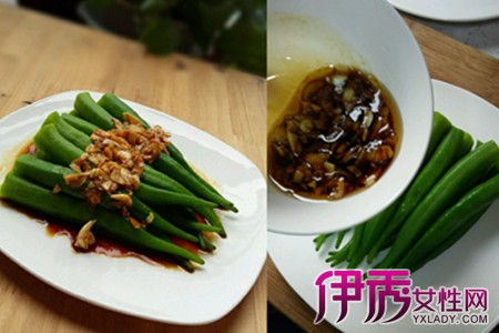 秋葵本是一种低脂肪、低热量的食物,无论是用它来炒菜还是用它来做汤都非常的可口。蒜蓉秋葵也是一种十分常见的吃法。首先将秋葵蒂去掉之后洗干净,再放入开水当中焯一下,焯好之后将其捞出,从中间刨开,然后放入盘中。准备好大蒜、小米椒、醋、酱油、糖、蚝油、香油、盐,将以上佐料放入秋葵之上搅拌均匀即可。
