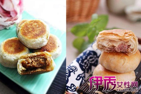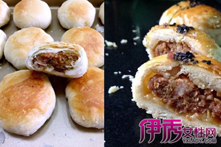 拿一个水油皮小面团压扁,把一个油酥皮小面团放在它的上面,用手包起来,包好的面团收口朝下放置。准备一个擀面杖,把面团擀成椭圆形,然后把面皮从上往下卷起来。卷好的面团再擀成椭圆面片,然后再卷起来。取一个卷好的面团,用擀面杖擀成外薄内厚的圆形的面皮。取适量的肉馅,放在面皮中间,然后包起来,收口要收紧防止烤制过程肉馅露出来。