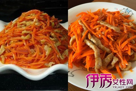 红萝卜用来制作菜也是很受欢迎的。把它洗干净并切薄片,瘦肉切条形状并用生粉和花生油腌制,准备少许的蒜米切成蓉。一切准备就绪后,把锅取出,等锅热油开后,先把蒜蓉下去爆炒出香味,然后把瘦肉也下去一起大火炒,炒到肉变也金黄色后也把红萝卜加进去,来回翻腾炒到红萝卜稍为变色后加适量的清水,煮到水干后再撒盐巴和料酒调味就可上桌了。