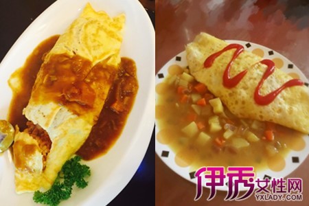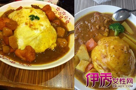 炒好的米饭用饭碗盛出来,用小勺子或直接用干净的手压实,倒扣在一个大盘子里,用干净的手将米饭做成一个橄榄的形状;干净的锅中放油,将打好并加入少量淀粉的鸡蛋液倒进锅子里,煎成一个鸡蛋薄饼,将米饭放到蛋皮的一侧,迅速的将蛋皮的另一侧盖上来,轻轻的滑出锅子放在盘子里,再淋上最开准备的咖喱酱。【女物原创未经允许,谢绝转载!】
