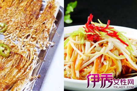 做法三:凉拌金针菇。准备材料金针菇和红椒、以及适当的橄榄油、辣椒酱和葱。首先将金针菇洗干净切成合适的大小,红椒去籽切丝,放入烧开的放入适量盐的锅中煮一分钟左右捞起,放入凉水中冷却再捞起,之后调料,把葱蒜切碎放橄榄油和辣椒酱进去搅拌均匀,最好浇在金针菇上,凉拌金针菇就完成啦。【女物原创未经允许,谢绝转载!】