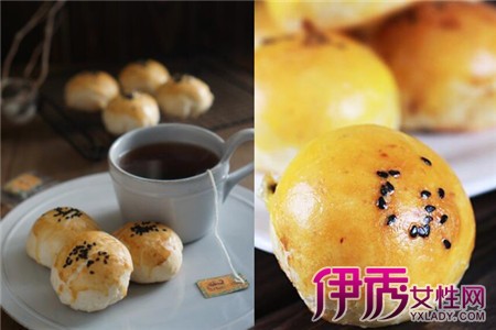 再用面团包住内陷,做成圆形,收口要向下。把做好的蛋黄酥撒一点白芝麻,摆在有油纸的烤盘上,刷一层蛋黄液。烤箱温度设置为180°,烤制20分钟左右,中途要再刷一次蛋黄液,色泽会更好。【女物原创未经允许,谢绝转载!】