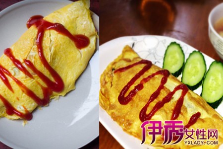 然后把搅拌好的鸡蛋放进平底锅里煎成薄饼,再把炒好的炒饭放在鸡蛋饼上包起来,再淋上番茄酱就大功告成了。【女物原创未经允许,谢绝转载!】