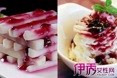 最后取出蒸好的山药,把刚刚熬制的蓝莓酱淋到上面,一道美味的蓝莓山药甜品就做好啦,男同胞也可以学一学,做给自己女朋友吃,一定会给你在女朋友心中加分哦。【女物原创未经允许,谢绝转载!】