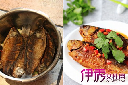 首先要把买来的鲫鱼清洗干净,处理掉内脏,沥干水分放在一旁备用。接着把葱段和姜片都分成相等的两份,还有辣椒、花椒、香叶等大料也都分成两份备用。之后拿一口煎锅,放入一点食用油加热,把鲫鱼分批放在煎锅上煎成两面都是金黄色的,捞出放在盘子里备用。接着就可以在高压锅底部放上一份刚才准备好的葱姜还有大料等。