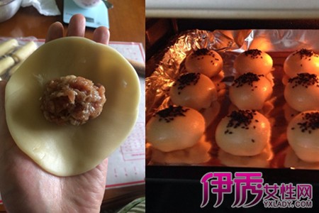 鲜肉月饼对于肉的选用多为黑毛猪,肉质鲜嫩紧实,在进入烤箱之前,检查收口处有没有馅料,有馅料在收口处易导致烤制过程中露馅,影响美观和口感。可以在馅料里加入适量的蜂蜜或糖,表皮刷一层黄油,有利于汤汁不外漏和表皮的酥脆。【女物原创未经允许,谢绝转载!】