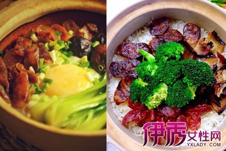 第一种:腊味煲仔饭。食材:大米、香肠、鸡蛋、小油菜、食用油、食盐、蚝油、生抽、白砂糖、麻油。把砂锅洗干净擦干,然后往锅底刷上一层食用油。大米淘洗干净后,倒入砂锅,再加上适量的清水,大米和清水的比例为:1:1.5,浸泡一小时待用。大米泡好后,加入少量食用油搅拌均匀。把砂锅放到火上,开大火煮开后转小火,盖盖子焖煮。