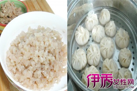 最后,包灌汤包上锅蒸。在每张面皮的二分之一方上将做好的馅儿,加点丁状的皮冻,用另一半面皮将馅儿和皮冻包裹住。之后蒸锅水烧开,放上包好的灌汤包,大火蒸上12-15分钟就好啦。