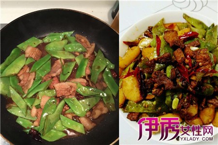 第一步,将新鲜买来的扁豆两头去筋,弄成2节;将面条切成小小的条形状。第二步,将扁豆和面条一同倒入油锅,快速翻炒后,再向其中放入葱花、姜丝、大蒜和肉片,再次翻炒,直至扁豆变成嫩黄色。第三步,盖锅,用小火慢慢蒸煮10到15分钟,关火,放入调味料。就这样简简单单的三部曲,扁豆焖面就做好了。