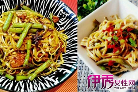 把肉炒到有点金黄放入姜片和葱段再翻炒两下,放入开水捞过的豆角,(把豆角放到开水中煮,几分钟后捞出)继续翻炒,放入精盐,直到把豆角和肉都炒干,这样更容易入味而且特别好吃。接着放入面条,要放在豆角上面,均匀摆放,放入水,稍微莫过面条就可以。因为豆角已经熟的差不多了。直到锅里没有水面条熟了就OK了。