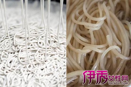 然后,将泡好的粉条放进煮沸的汤里面煮好后捞起来过一下凉水后放进碗里,再把青菜稍微煮一下捞起来放在煮好的粉条上面。