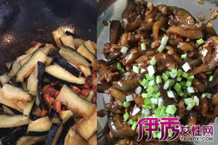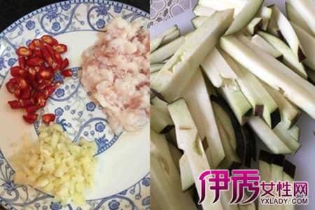 第四种:香辣肉末茄子。食材:猪肉馅108克、茄子3条、生抽、料酒、豆瓣酱、生姜、植物油、白砂糖、大蒜、葱、食盐。茄子洗净,切成小块待用。在猪肉馅中加入料酒和盐,抓匀,腌制十分钟。葱姜蒜切碎。