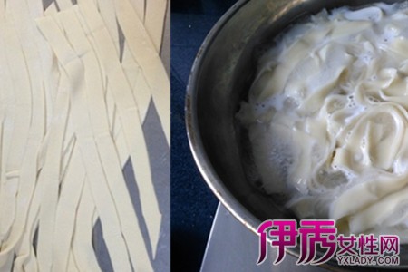 拿出发酵好的面团,将面团擀成薄片,并均匀的切成条状。这样,我们就完成了制作的第一步—面条的制作。将面条放入滚沸的开水中,在期间要经常加入冷水,通常煮7分钟即可。这样的面条不会过于软糯也不会不熟。捞出来的面条可以过一下凉水,增加面条的柔韧度。