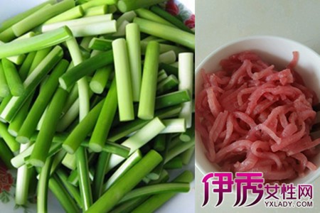 很多家庭主妇们都会在蒜苔炒肉丝这道菜中加入一点木耳,因为木耳具有止血养气的功效,蒜苔木耳两者同食可以使食疗效果翻倍。首先,最好选用五花肉,肥瘦都有比较均匀,切成丝状,将肉丝用料酒、生抽生粉一起搅拌,腌制一会。