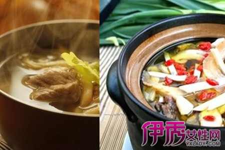 药膳二:猪脚汤。准备药材有猪脚、党参、红枣、枸杞、甘草、米酒和熟地。可以让商贩直接把猪脚剁碎,之后自己洗干净放入锅中,同时加入其他材料一起炖一个小时左右即可。