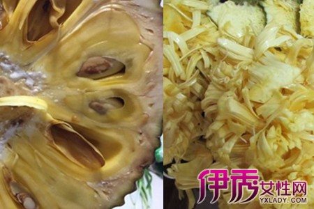 菠萝蜜的果肉四周布满了白色的丝状物,这些物质在剥皮时注意要去除掉。这些丝状物也不要扔了,平时炒菜时可以做为荤炒的调料来配菜。