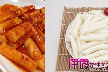 料理二:煎年糕。所需材料有年糕、韩国辣酱、番茄酱、熟芝麻、油和韩国年糕酱。