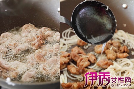 起油锅,放入裹上面粉的猪大肠炸制,炸至表面微黄,捞出控油。热锅凉油,下酸笋丝炒干,加入炸好的猪大肠,翻炒两三分钟,淋入适量料酒和香醋,翻炒均匀。最后撒入食盐和鸡精调味,即可盛出锅。【女物原创未经允许,谢绝转载!】