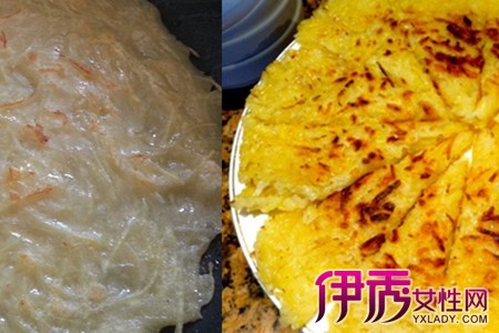 再把油倒入平底锅中,将调好的面糊平铺在锅中,用小火慢慢煎好,直到两面都变成金黄色就可以吃了。