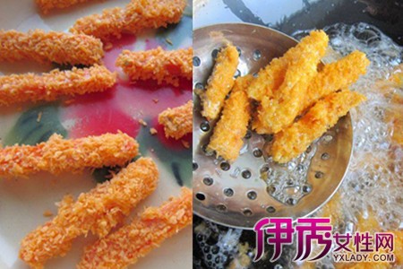 食材:南瓜300克、鸡蛋1个、面包碎、淀粉、食用油、食盐。南瓜削皮,去除瓜瓤,切成细长条,装入盆中,加入适量食盐,搅拌均匀,腌制二十分钟,把南瓜的水分腌出来。把南瓜腌出的水分倒掉,然后把每一根南瓜条裹上干淀粉。取一干净的大碗,打入一个鸡蛋,用打蛋器将其打散。