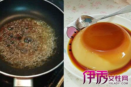 然后,在锅中加入适量的白糖翻炒融化变成焦糖,加入适当的沸水搅拌。把焦糖倒入模型之中,置于冰箱冷藏片刻。在一个碗中,加入适量的牛奶、蛋黄液、和些许的QQ糖,均匀搅拌充分。