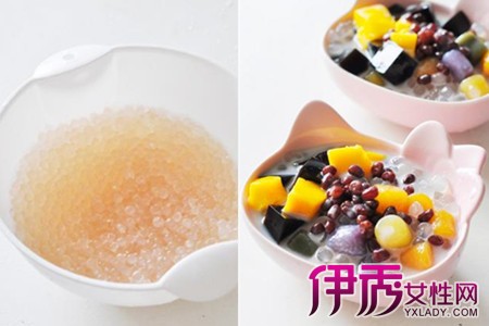 烧一锅开水,放入做好的芋圆,中小火把芋圆煮到全部浮起来,捞出锅放入冰水冷却。待芋圆完全冷却,和西米一起用清水冲洗一遍。把黑凉粉煮好,切成丁。芒果也切丁,把椰汁和炼乳混合在一起。取适量芋圆和西米放入碗中,浇上一些黑凉粉丁、蜜红豆、芒果丁、椰汁炼乳混合液,搅拌均匀就可以食用了。【女物原创未经允许,谢绝转载!】