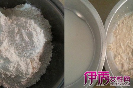 洗面五次后,把洗面水倒入另一个大容器里,让洗面水静置一个小时左右,让洗面水中的淀粉自然沉淀。一个小时后,倒掉洗面水,留下最底层的沉淀物,用勺子搅拌均匀。准备两个披萨盘,分别在盘上抹上一些食用油,舀适量的粉浆装入盘中,放入蒸锅中,大火蒸制两分钟。