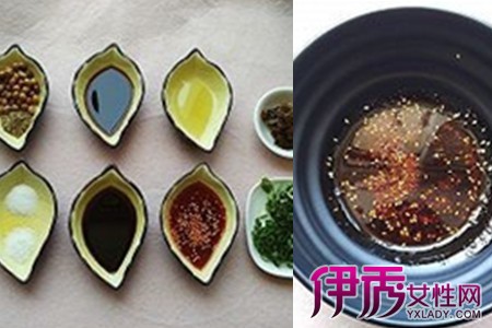 然后,开始做配汤。开大火将食用油油烧熟后关温火,加入适量的辣椒粉、花椒粉、豆瓣酱慢火煸出红油,倒入适量的准备高的鸡汤(或者骨头汤,当然清汤也是可以的)及盐、醋鸡精等调味料进行熬制。带煮沸后就可以关火了。