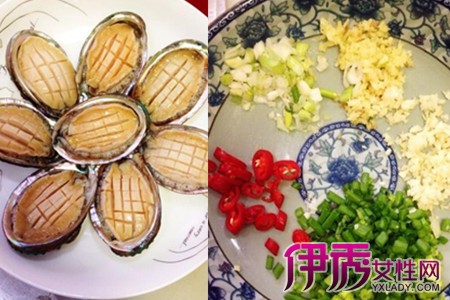 食材:鲍鱼8只、蒸鱼豉油、料酒、红辣椒、姜、蒜、葱、蚝油。
