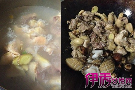 鲍鱼用清水洗干净,表面打上花刀。香菇用温水泡软,鸡肉洗净切小块,生姜切片。在锅里倒入半锅清水,烧开,放入切好得鸡肉块和生姜片,烫两分钟,捞出鸡肉,过一遍凉水,滤干水分。