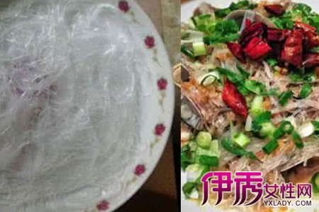 接着,在盘子里铺上一层粉丝,把花蛤摆在粉丝上。